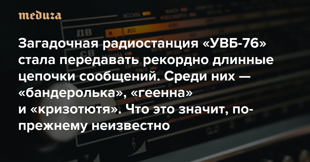 Загадочная радиостанция «УВБ-76» стала передавать рекордно длинные цепочки сообщений. Среди них — «бандеролька», «геенна» и «кризотютя» Что это значит, по-прежнему неизвестно