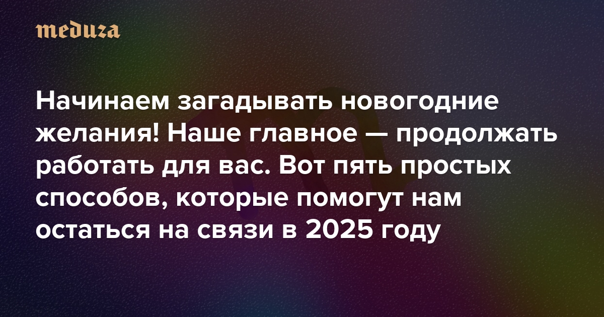 Начинаем загадывать новогодние желания! Наше главное — продолжать работать для вас Вот пять простых способов, которые помогут нам остаться на связи в 2025 году. Что бы ни случилось