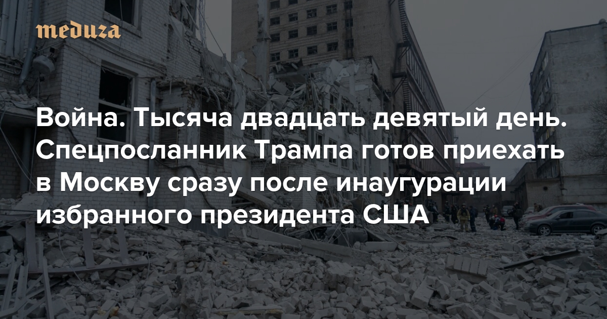 Война Тысяча двадцать девятый день. Спецпосланник Трампа готов приехать в Москву сразу после инаугурации избранного президента США