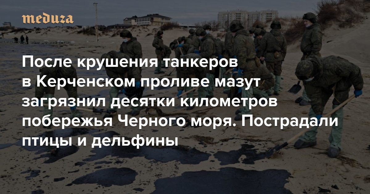 Около 50 километров побережья Черного моря в Краснодарском крае оказалось загрязнено из-за разлива нефтепродуктов, произошедшего после крушения двух танкеров в Керченском проливе 15 декабря. Как заявил 19 декабря президент РФ Владимир Путин, из танкеров вытекло почти 40% мазута, то есть более трех тысяч тонн. Из-за разлива нефтепродуктов в Анапе, поселке Веселовка и станице Благовещенская действует режим ЧС.