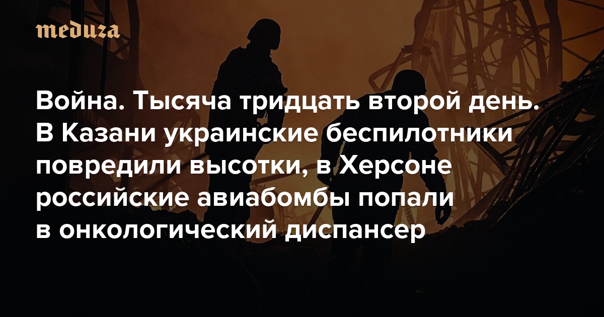 Война Тысяча тридцать второй день. В Казани украинские беспилотники повредили высотки, в Херсоне российские авиабомбы попали в онкологический диспансер