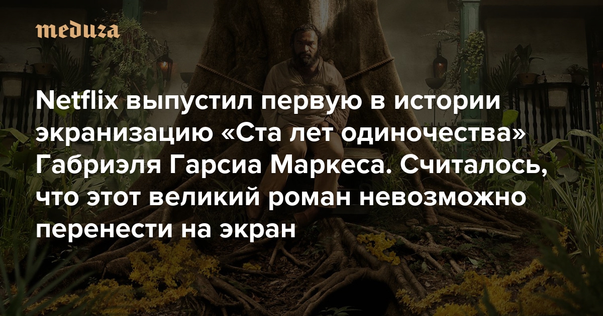 На Netflix вышли первые восемь эпизодов сериала «Сто лет одиночества» по роману Габриэля Гарсиа Маркеса. История семи поколений семьи Буэндиа и вымышленного колумбийского города Макондо слишком обширна, чтобы снять на ее основе полнометражный фильм, поэтому автор никому не разрешал адаптировать свою книгу для кино. Маркес умер в 2014 году, и его сыновья, Родриго и Гонсало Гарсиа Барка, все же согласились на экранизацию «Ста лет одиночества», однако поставили два условия: во-первых, это должен быть сериал, и достаточно длинный, чтобы вместить все сюжетные линии романа, а во-вторых, его должны снимать в Колумбии и на испанском языке. Netflix выполнил все условия наследников. Кинокритик «Медузы» Антон Долин рассказывает, получилось ли у шоураннеров сделать экранизацию, достойную великого первоисточника.