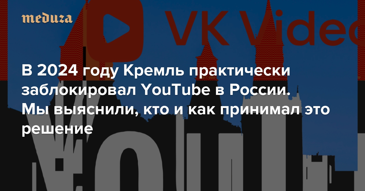 Либо идите в VK, либо занимайтесь чем-нибудь другим В 2024 году Кремль практически заблокировал YouTube в России. Мы выяснили, кто и как принимал это решение