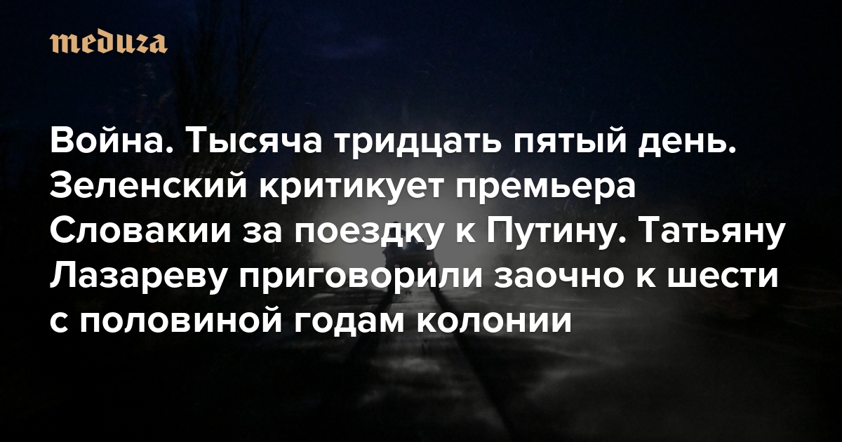Война Тысяча тридцать пятый день. Зеленский критикует премьера Словакии за поездку к Путину. Татьяну Лазареву приговорили заочно к шести с половиной годам колонии