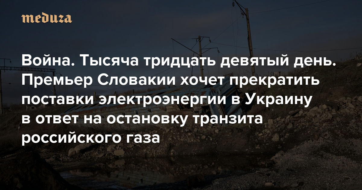 Война Тысяча тридцать девятый день. Премьер Словакии хочет прекратить поставки электроэнергии в Украину в ответ на остановку транзита российского газа