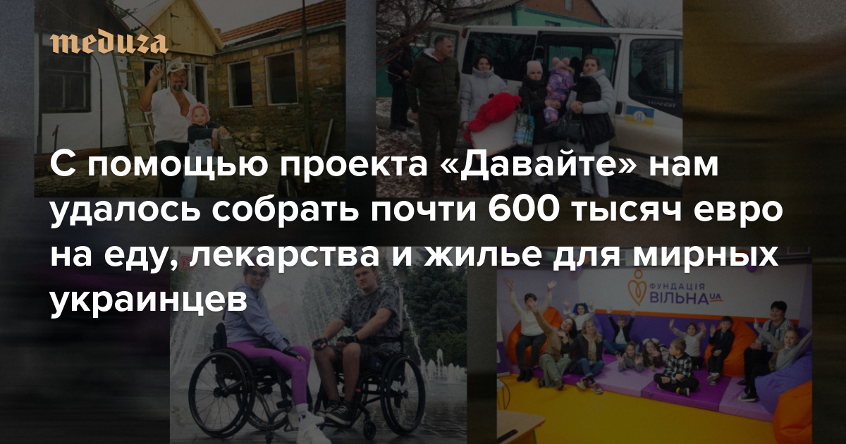 С помощью проекта «Давайте» нам удалось собрать почти 600 тысяч евро на еду, лекарства и жилье для мирных украинцев Передаем теплые слова благодарности от тех, кому эти деньги помогли выжить. Давайте продолжать!