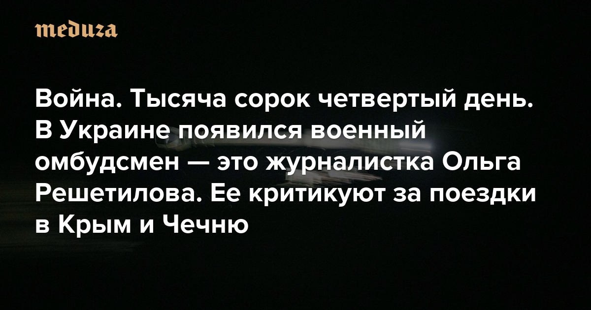 Война Тысяча сорок четвертый день. В Украине появился военный омбудсмен — это журналистка Ольга Решетилова. Ее критикуют за поездки в Крым и Чечню