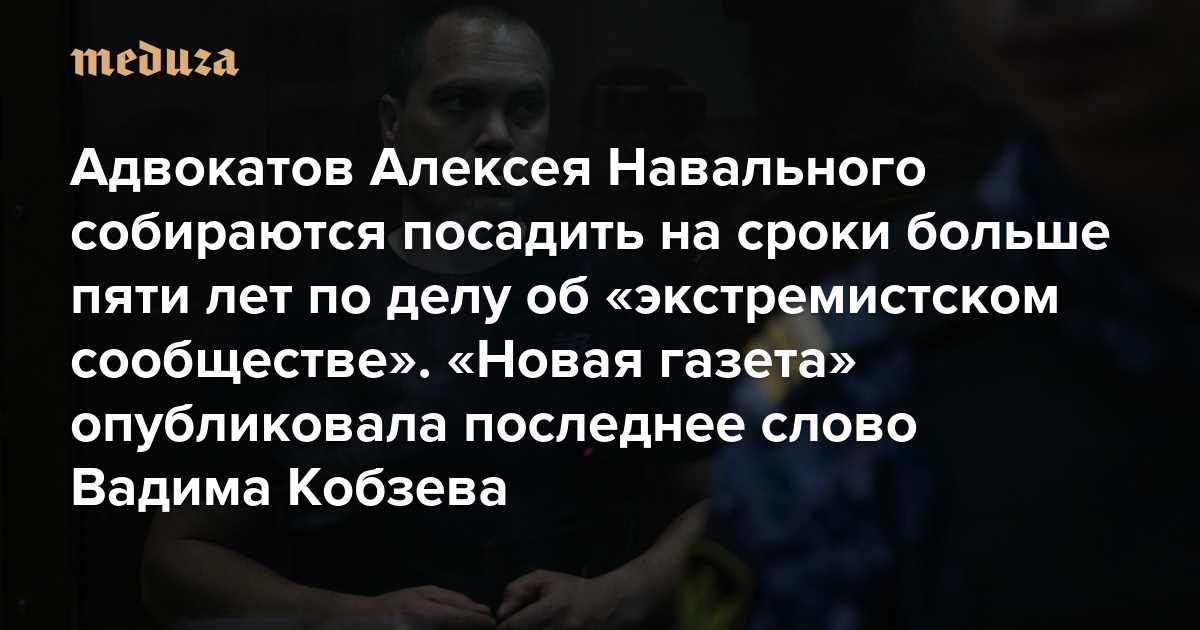 «Нас судят за передачу мыслей Навального другим людям» Адвокатов убитого политика собираются посадить на сроки больше пяти лет по делу об «экстремистском сообществе». «Новая газета» опубликовала последнее слово Вадима Кобзева