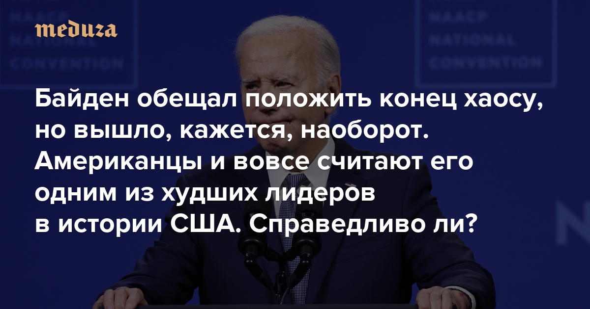 Байден обещал положить конец хаосу, но вышло, кажется, наоборот. Американцы и вовсе считают его одним из худших лидеров в истории страны Справедливо ли? «Медуза» подводит итоги правления 46-го президента США