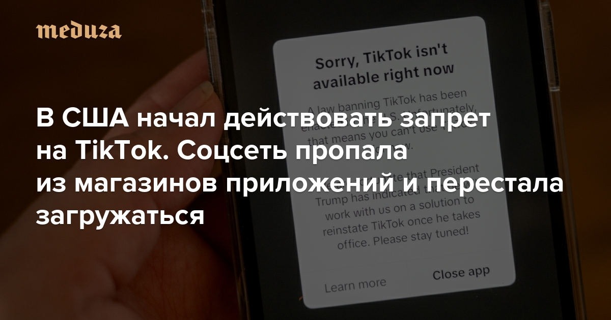 В США начал действовать запрет на TikTok. Соцсеть пропала из магазинов приложений и перестала загружаться Трамп пообещал сразу после инаугурации подписать указ, который ее вернет (правда, только на 90 дней)