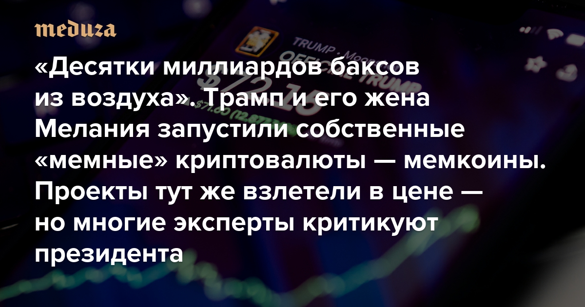 «Десятки миллиардов баксов буквально из воздуха» Трамп и его жена Мелания запустили собственные «мемные» криптовалюты — мемкоины. Проекты тут же взлетели в цене — но многие эксперты критикуют президента