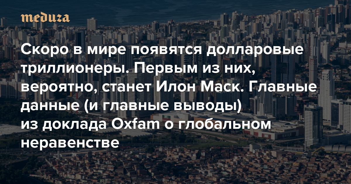 Скоро в мире появятся долларовые триллионеры. Первым из них, вероятно, станет Илон Маск Главные данные (и главные выводы) из доклада Oxfam о глобальном неравенстве