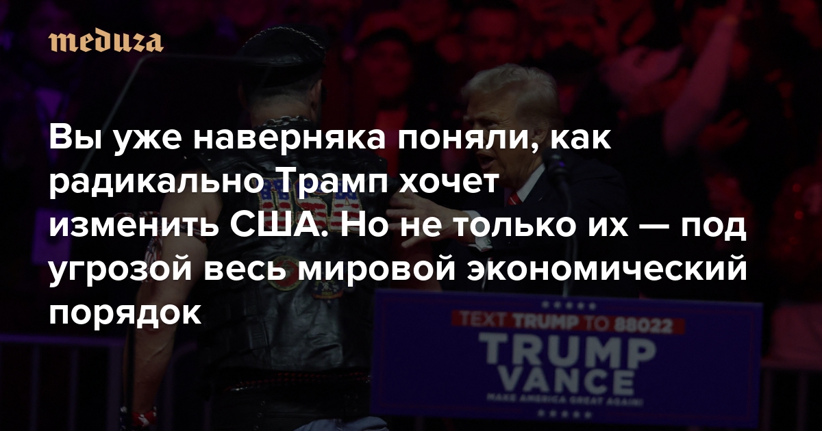 Вы уже наверняка поняли, как радикально Трамп хочет изменить США. Но не только их — под угрозой весь мировой экономический порядок Наступает ли закат эры глобализма и свободной торговли? И что придет на смену?