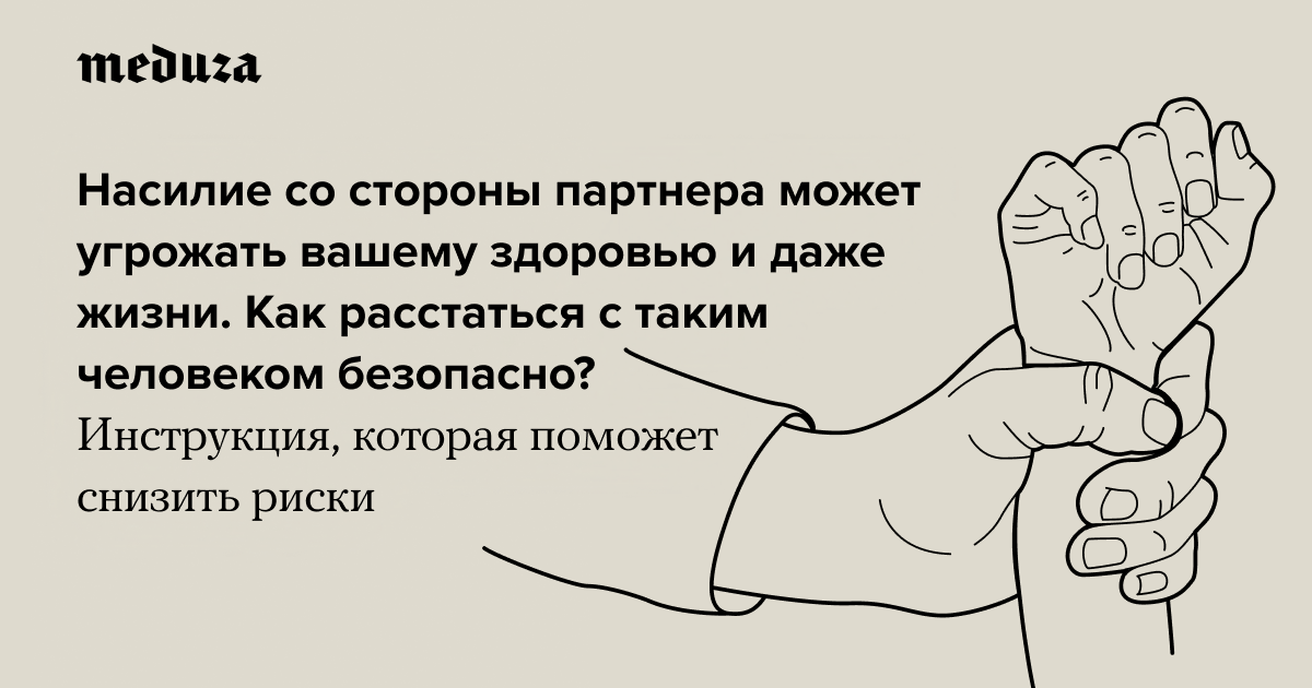 Кооператив независимых журналистов «Берег» вместе с центром по работе с проблемой насилия «Насилию.нет» и «Консорциумом женских неправительственных объединений» подготовил инструкцию о том, как обезопасить себя в отношениях, в которых есть насилие. А главное, как выйти из них с минимальными рисками для своей жизни и здоровья. «Медуза» публикует этот текст с небольшими изменениями.