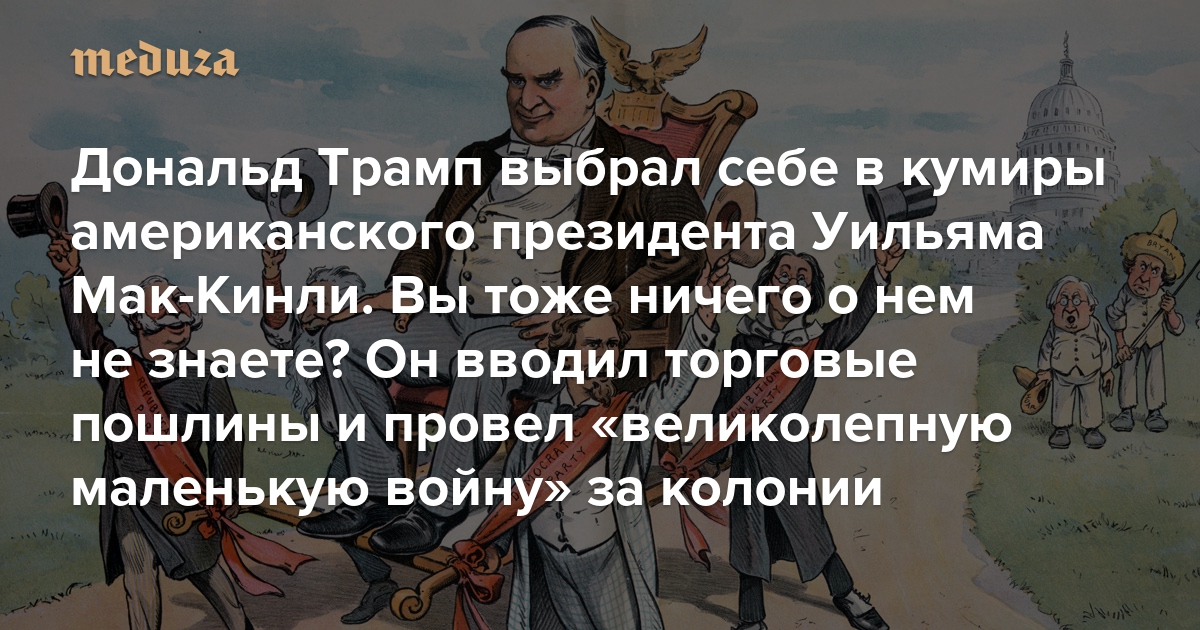 Дональд Трамп выбрал себе в кумиры американского президента Уильяма Мак-Кинли. Вы тоже ничего о нем не знаете? Он вводил торговые пошлины и провел «великолепную маленькую войну» за колонии