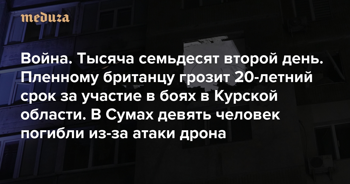 Война Тысяча семьдесят второй день. Пленному британцу грозит 20-летний срок за участие в боях в Курской области. В Сумах девять человек погибли из-за атаки дрона