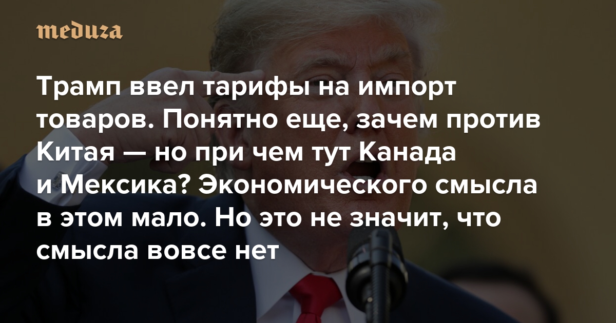Трамп ввел тарифы на импорт товаров. Понятно еще, зачем против Китая — но при чем тут Канада и Мексика? Экономического смысла в этом мало. Но это не значит, что смысла вовсе нет
