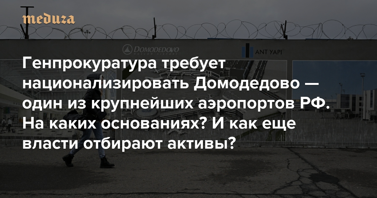 Генпрокуратура требует национализировать Домодедово — один из крупнейших аэропортов РФ. На каких основаниях? И как еще власти отбирают активы? Краткий гид «Медузы» по новой волне национализации в России