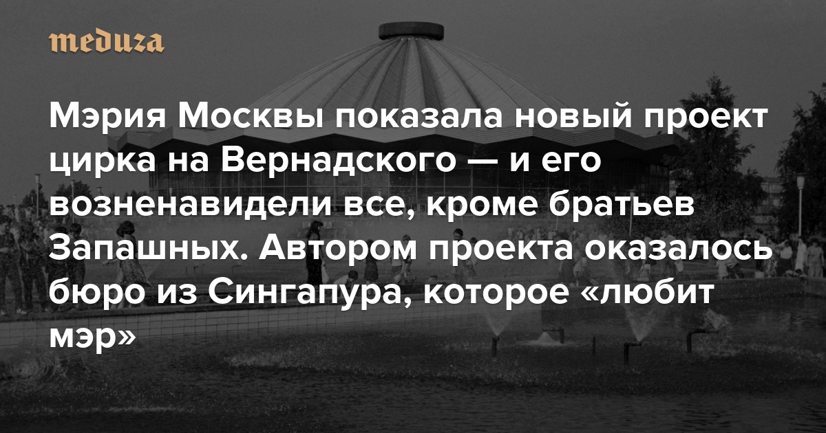 Мэрия Москвы показала новый проект цирка на Вернадского — и его возненавидели все, кроме братьев Запашных Автором проекта оказалось бюро из Сингапура, которое «любит мэр»