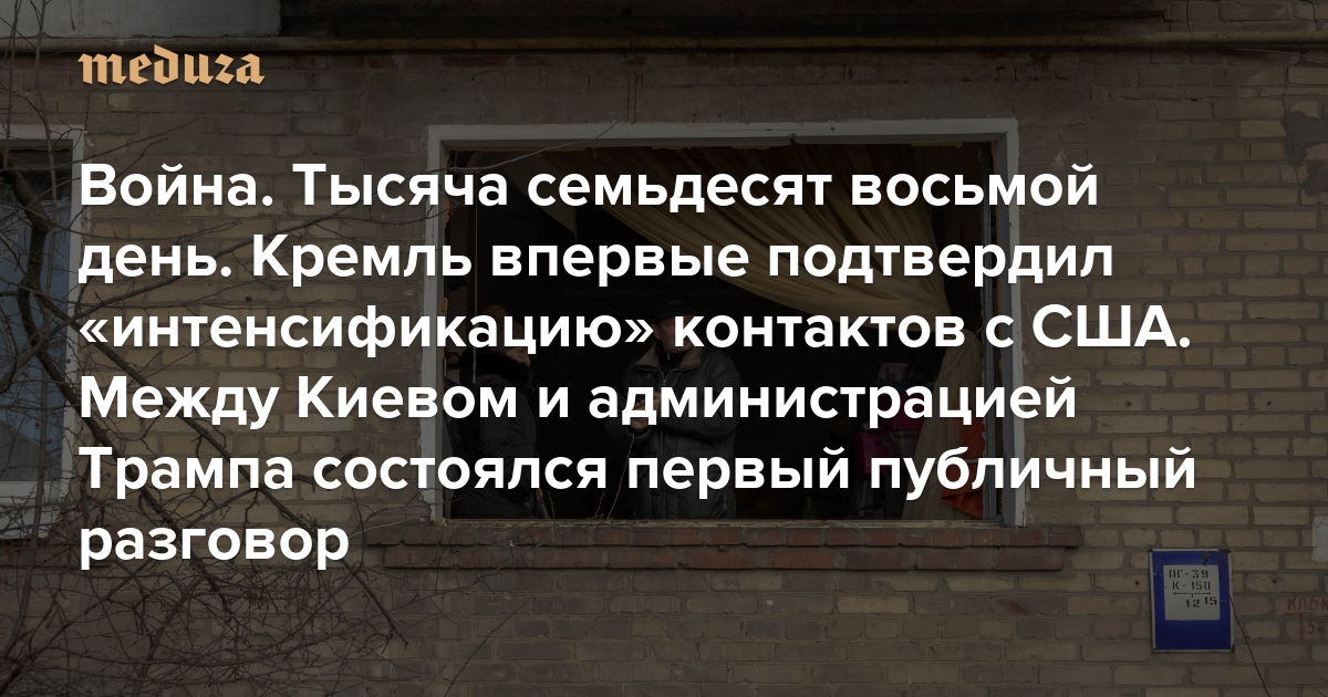 Война Тысяча семьдесят восьмой день. Кремль впервые подтвердил «интенсификацию» контактов с США. Между Киевом и администрацией Трампа состоялся первый публичный разговор