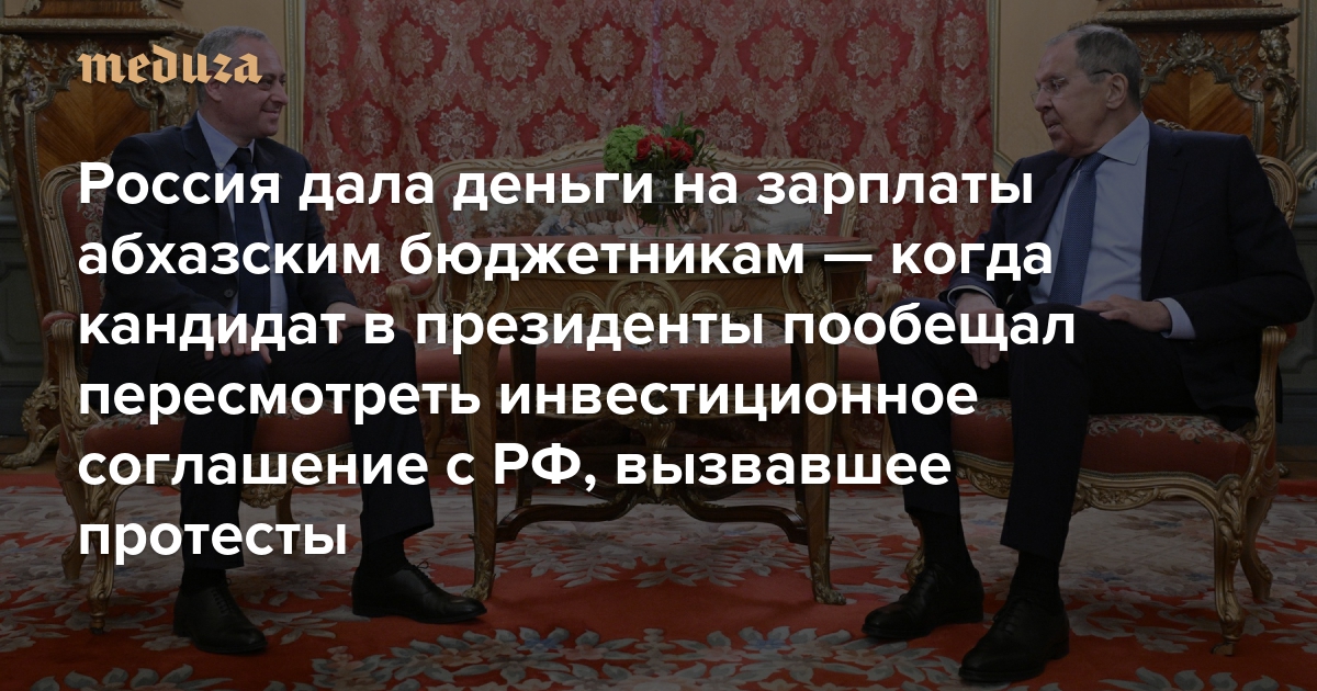 Россия дала деньги на зарплаты абхазским бюджетникам и анонсировала регулярные авиарейсы и восстановление поставок электричества в Абхазию Кандидат в президенты пообещал пересмотреть инвестиционное соглашение с РФ, вызвавшее протесты