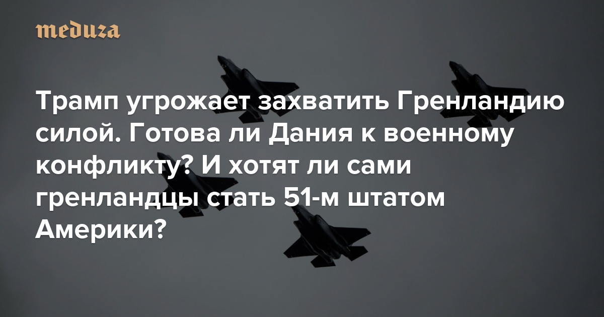 Трамп очень хочет получить контроль над Гренландией. Он готов купить ее и допускает даже военный захват. Датские власти раз за разом отказывают в продаже и параллельно увеличивают расходы на оборону и ищут поддержки у европейских стран. «Медуза» объясняет, готова ли Дания к вооруженному конфликту и что о происходящем думают сами гренландцы.