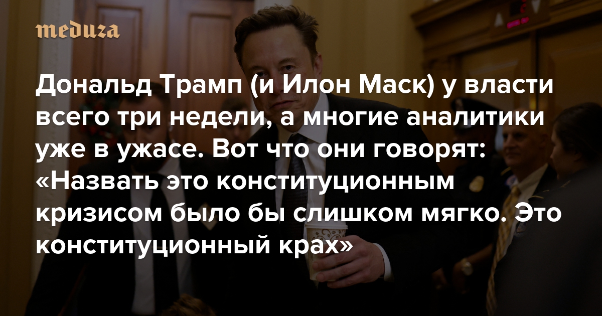Дональд Трамп (и Илон Маск) у власти всего три недели, а многие аналитики уже в ужасе. Вот что они говорят «Назвать это конституционным кризисом было бы слишком мягко. Это конституционный крах»