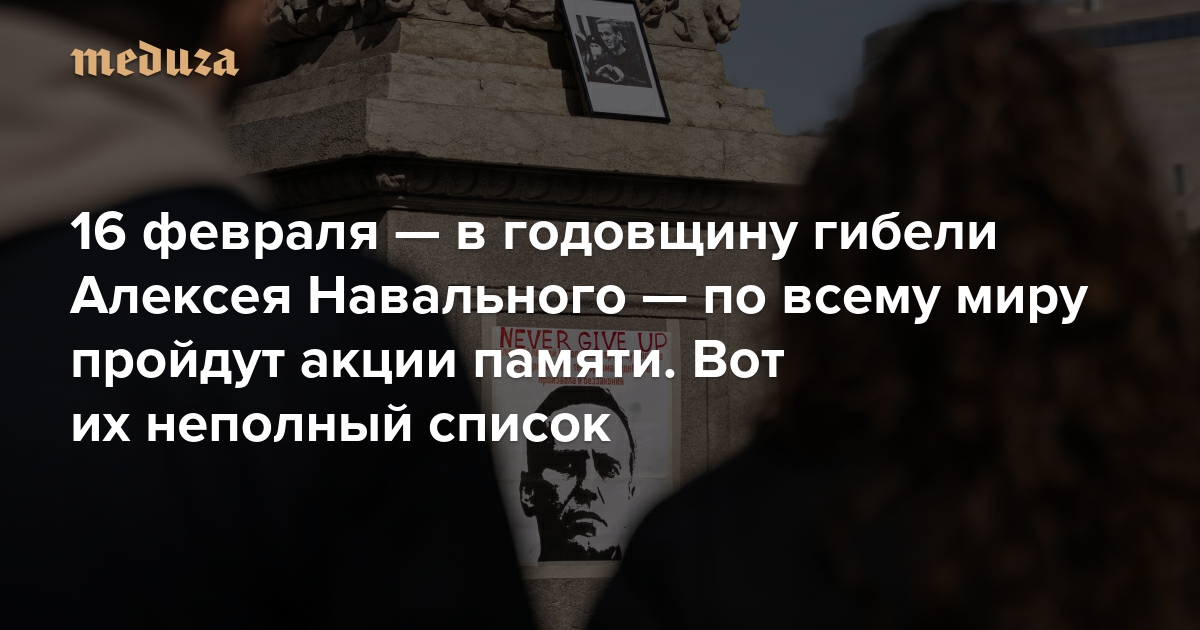 16 февраля — в годовщину гибели Алексея Навального — по всему миру пройдут акции памяти Вот их неполный список