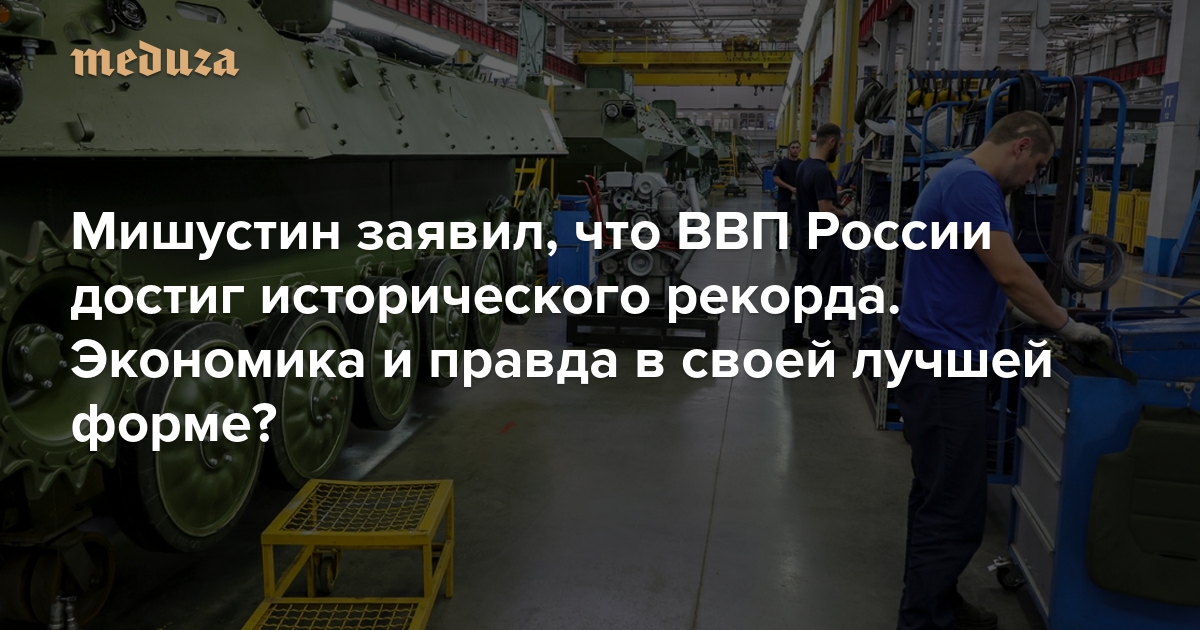 Премьер-министр РФ Михаил Мишустин 7 февраля доложил Владимиру Путину о ситуации в экономике, представив последние официальные данные. По подсчетам Росстата, темпы роста ВВП по итогам 2024 года составили 4,1% — выше прогнозов властей. Кроме того, номинальный размер ВВП превысил 200 триллионов рублей, что стало «историческим рекордом», отметил Мишустин. Председатель Совета Федерации Валентина Матвиенко назвала результат «экономическим чудом» в условиях санкций и заверила, что его будут изучать экономисты. «Медуза» рассказывает, что про экономику РФ пишут сейчас, почему ее рекорды воспринимают со скепсисом и каких результатов ждать в 2025-м.