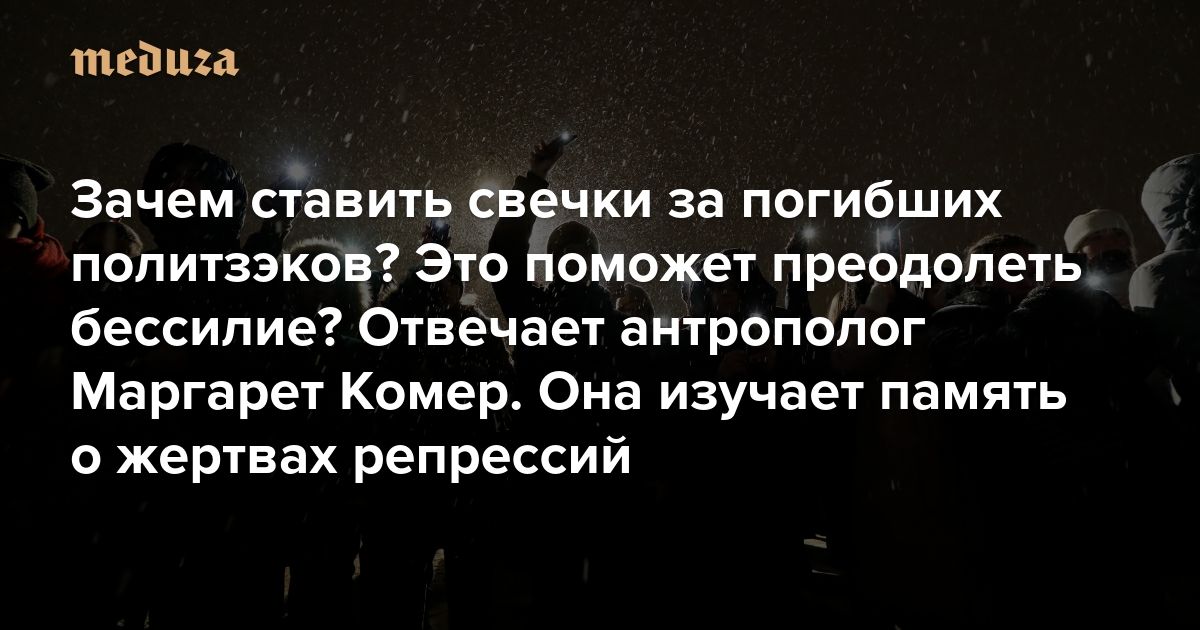 Зачем ставить свечки за погибших политзэков? Это как-то поможет преодолеть бессилие? Отвечает антрополог Маргарет Комер. Она изучает, как общества сохраняют память о жертвах репрессий и политического террора