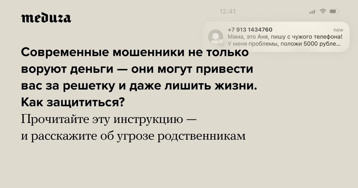 В правительстве подготовили специальный законопроект для борьбы с мошенниками (например, банкам и государственным службам планируют запретить общаться с гражданами с помощью «иностранных мессенджеров»). Но меры могут вступить в силу не сразу, а преступники постоянно адаптируются к новым реалиям. Умение правильно общаться (а в идеале вовсе не общаться) с мошенниками становится жизненно важным. Поэтому кооператив независимых журналистов «Берег» подготовил большую инструкцию (и короткий гайд!) на эту тему. «Медуза» публикует материал целиком.