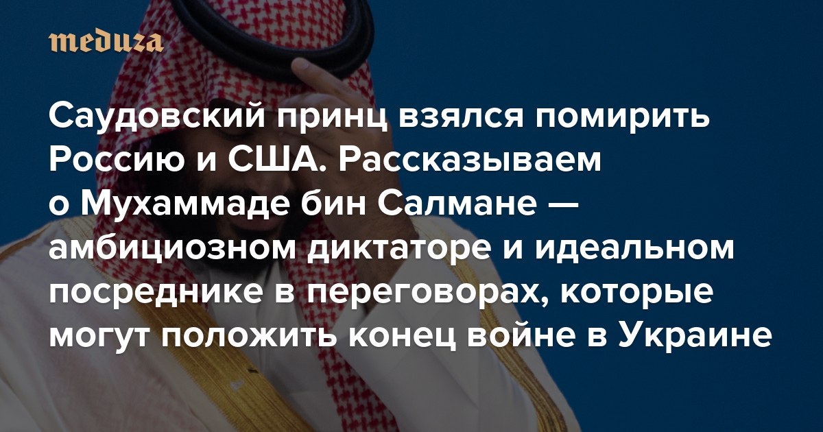 Саудовский принц взялся помирить Россию и США Рассказываем о Мухаммаде бин Салмане — амбициозном диктаторе и идеальном посреднике в переговорах, которые могут положить конец войне в Украине
