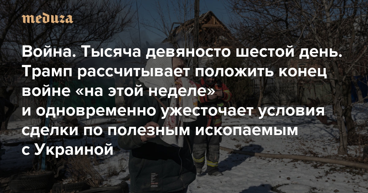 Война Тысяча девяносто шестой день. Трамп рассчитывает положить конец войне «на этой неделе» и одновременно ужесточает условия сделки по полезным ископаемым с Украиной