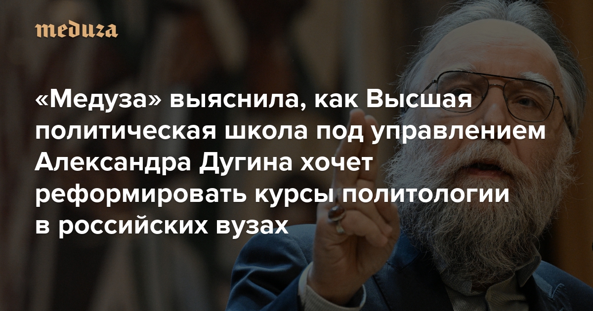 При РГГУ теперь работает Высшая политическая школа под управлением Дугина «Медуза» выяснила, как она хочет реформировать курсы политологии в российских вузах (осторожно, в этом тексте упоминается Антихрист)
