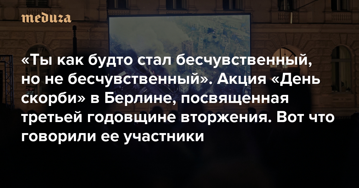 «Ты как будто стал бесчувственный, но не бесчувственный» Акция «День скорби» в Берлине, посвященная третьей годовщине вторжения. Вот что говорили ее участники