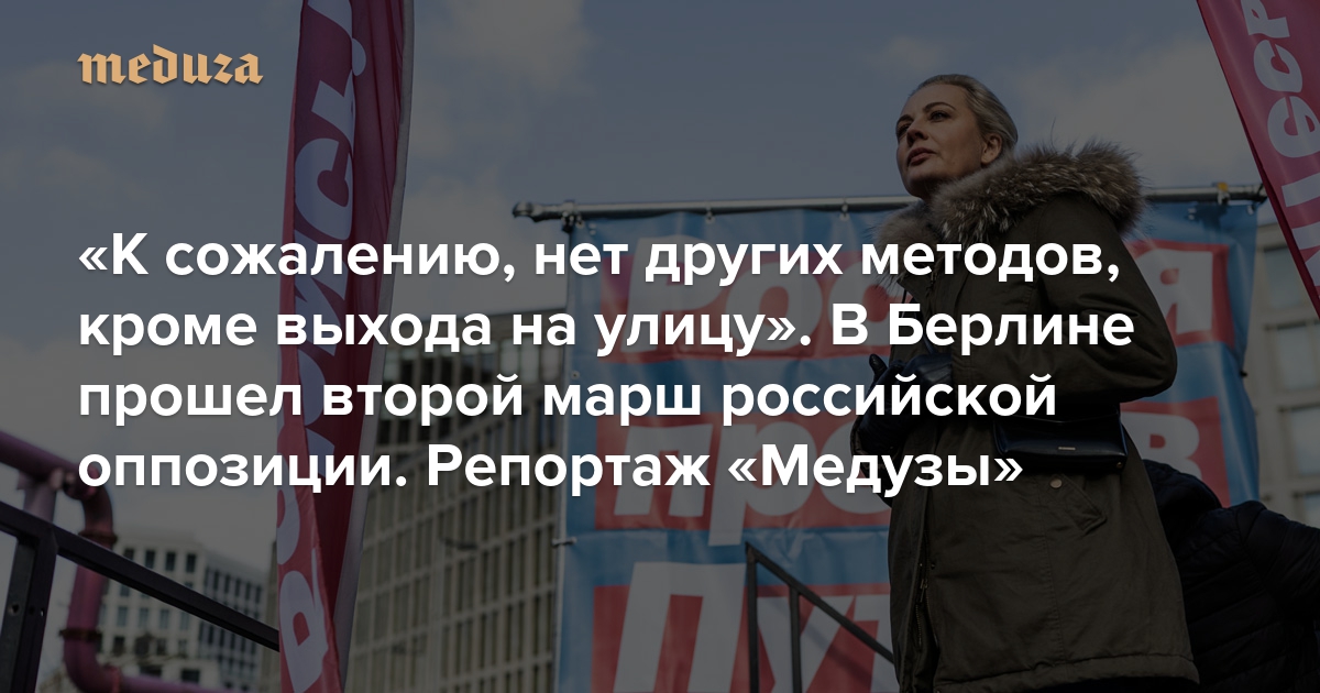 «К сожалению, нет других методов, кроме выхода на улицу» В Берлине прошел второй марш российской оппозиции. Репортаж «Медузы»