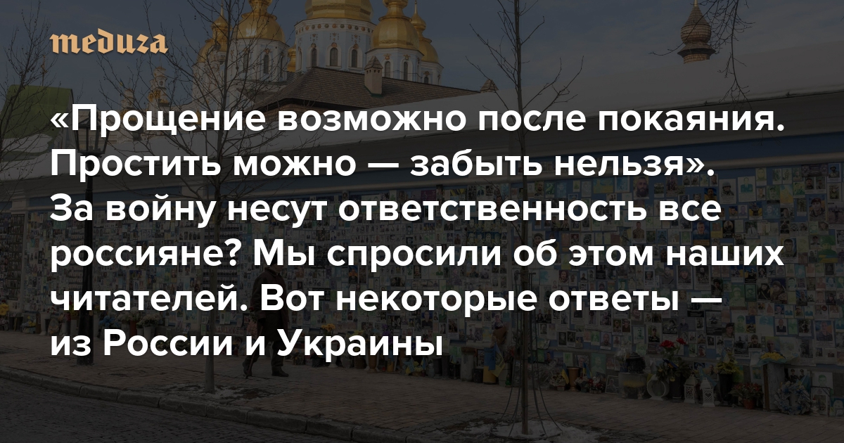 «Прощение возможно после покаяния. Простить можно — забыть нельзя» За войну несут ответственность все россияне? Мы спросили об этом наших читателей. Вот некоторые ответы — из России и Украины