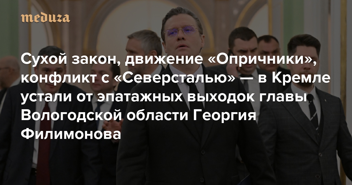 Сухой закон, движение «Опричники», конфликт с «Северсталью» — в Кремле устали от эпатажных выходок Георгия Филимонова Главе Вологодской области уже поступают «резко негативные сигналы» из Москвы
