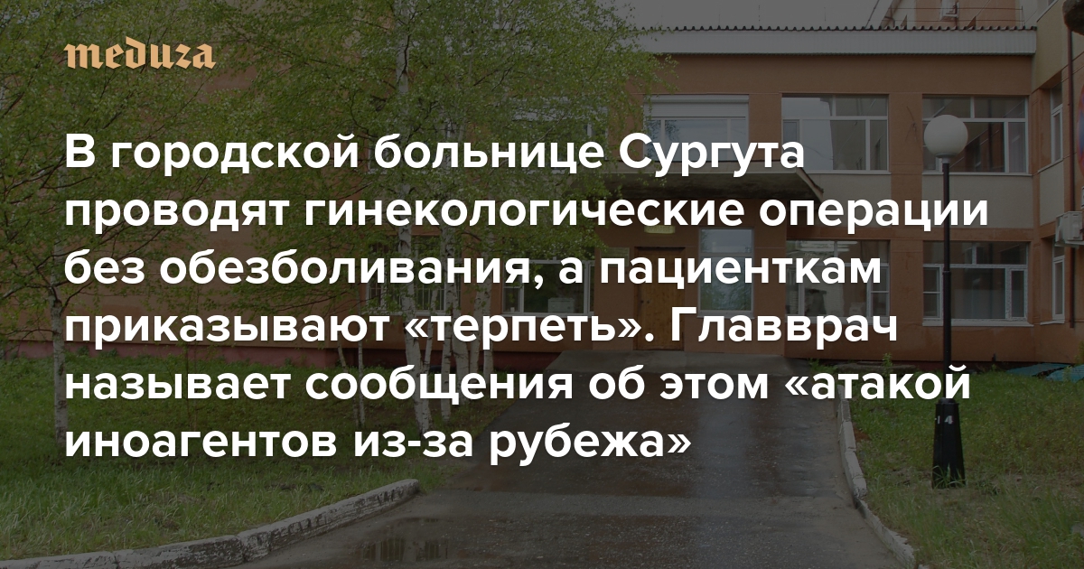 В городской больнице Сургута проводят гинекологические операции без обезболивания, а пациенткам приказывают «терпеть» Главврач называет сообщения об этом «травлей» и «атакой иноагентов из-за рубежа»