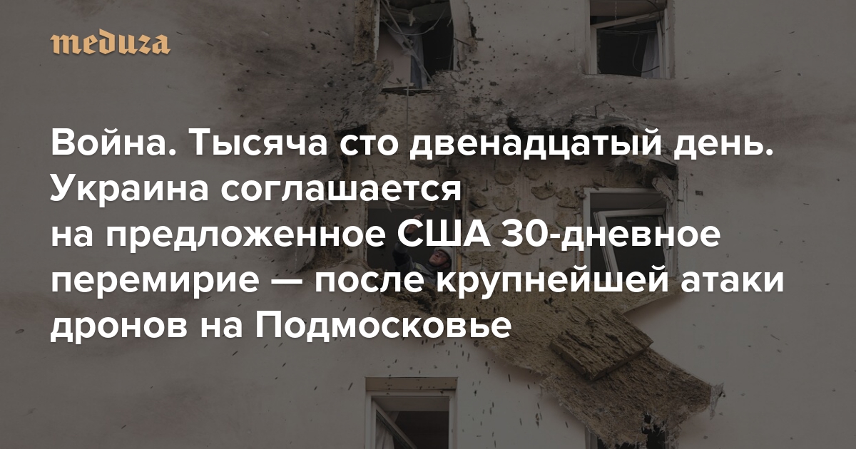 Война Тысяча сто двенадцатый день. Украина соглашается на предложенное США 30-дневное перемирие — после крупнейшей атаки дронов на Подмосковье