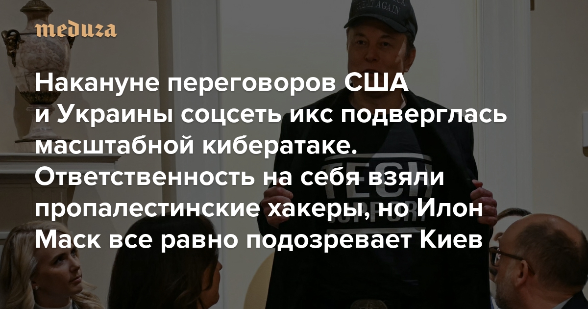 Накануне переговоров США и Украины соцсеть икс подверглась масштабной кибератаке. Ответственность на себя взяли пропалестинские хакеры Но Илон Маск все равно подозревает Киев