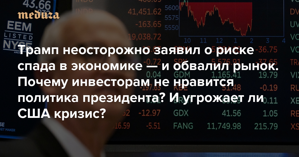 Трамп неосторожно заявил о риске спада в экономике — и обвалил рынок. Почему инвесторам не нравится политика президента? И угрожает ли США кризис?