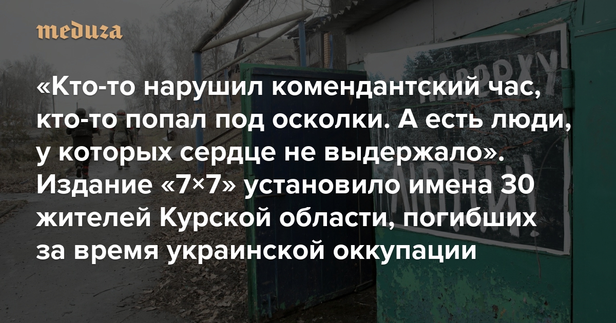 «Кто-то нарушил комендантский час, кто-то попал под осколки. А есть люди, у которых сердце не выдержало» Издание «7×7» установило имена 30 жителей Курской области, погибших за время украинской оккупации