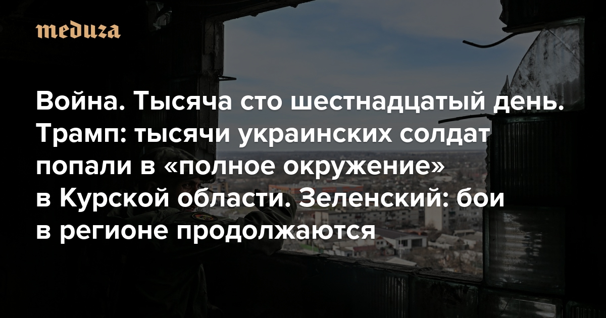 Война Тысяча сто шестнадцатый день. Трамп: тысячи украинских солдат попали в «полное окружение» в Курской области. Зеленский: бои в регионе продолжаются