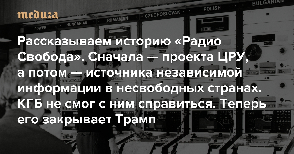 Рассказываем историю «Радио Свобода». Сначала — проекта ЦРУ, а потом — важного источника независимой информации в несвободных странах КГБ не смог с ним справиться. Теперь его закрывает Трамп