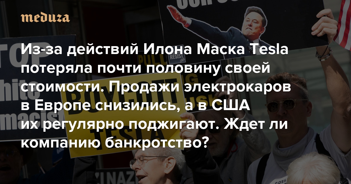 Из-за действий Илона Маска Tesla потеряла почти половину своей стоимости. Продажи электрокаров в Европе снизились, а в США их регулярно поджигают Ждет ли компанию банкротство?