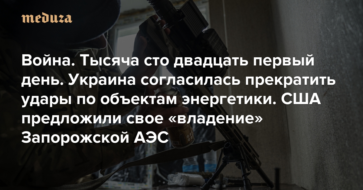 Война Тысяча сто двадцать первый день. Украина согласилась прекратить удары по объектам энергетики. США предложили свое «владение» Запорожской АЭС