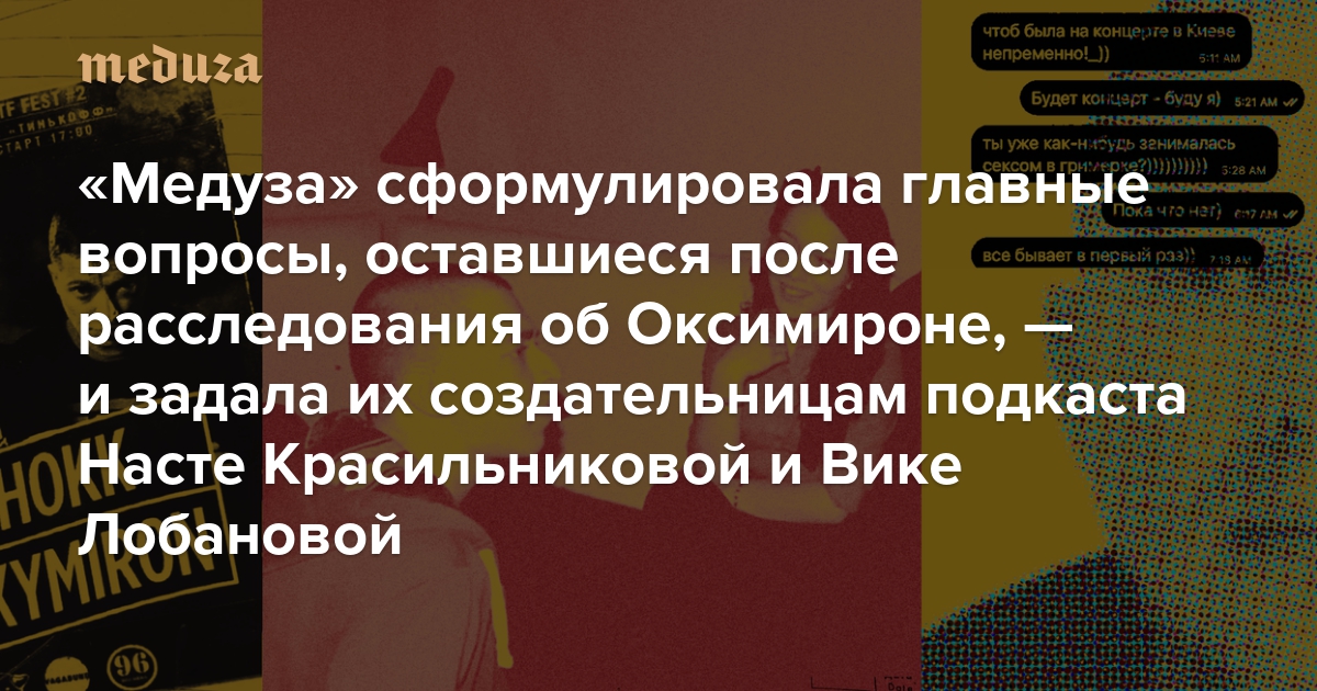 «Никто не ждет ответа от Мирона. Все снова ждут, что скажем мы» «Медуза» сформулировала главные вопросы, оставшиеся после расследования об Оксимироне, — и задала их создательницам подкаста Насте Красильниковой и Вике Лобановой