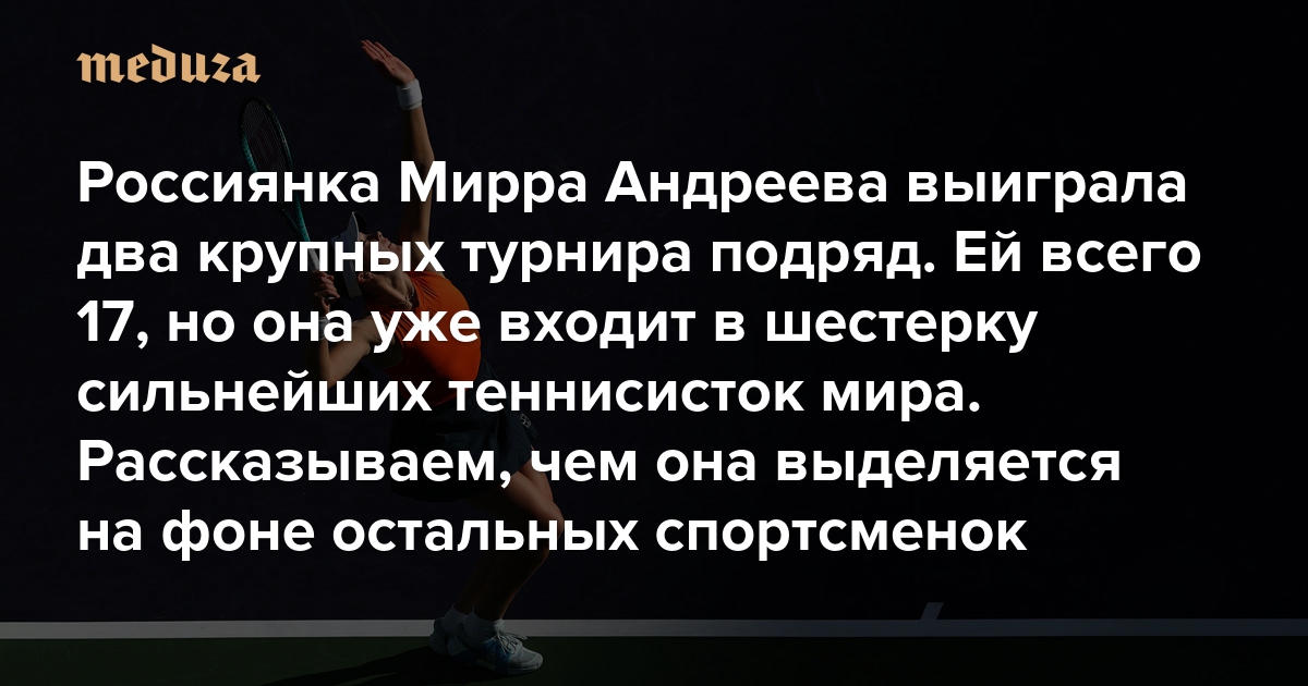 Россиянка Мирра Андреева выиграла два крупных турнира подряд. Ей всего 17, но она уже входит в шестерку сильнейших теннисисток мира Рассказываем, чем она выделяется на фоне остальных спортсменок