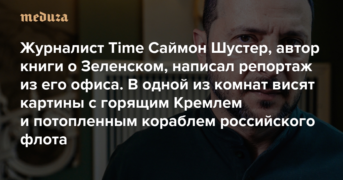 Журналист Time Саймон Шустер, автор книги о Зеленском, написал репортаж из его офиса В одной из комнат висят картины с горящим Кремлем и потопленным кораблем российского флота